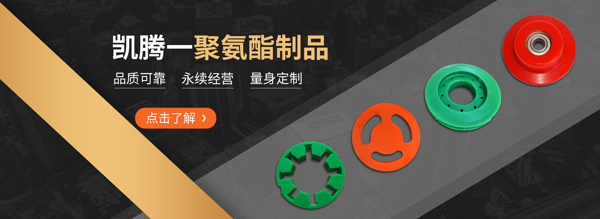 蘇州凱騰聚氨酯制品有限公司多年來(lái)一直致力于高性能聚氨酯彈性體的生產(chǎn)和研發(fā)。鑒于聚氨酯彈性體的特殊的出色性能,幾乎所有的工業(yè)系統(tǒng)中都會(huì)使用到聚氨酯彈性體的產(chǎn)品,我們的產(chǎn)品服務(wù)于眾多的行業(yè)如:石油、礦山、冶金、工程機(jī)械、汽車(chē)制造、多晶硅生產(chǎn)、核工業(yè)項(xiàng)目、紡織印染包裝、農(nóng)牧、金屬加工、水泥陶瓷、糧食碼頭、物流倉(cāng)儲(chǔ)自動(dòng)化、粉體成型與研磨等等;由于不同的行業(yè)和工況條件對(duì)聚氨酯彈性體的產(chǎn)品的使用性能要求是不同的,我們可以根據(jù)用戶產(chǎn)品特別的使用特性專(zhuān)門(mén)為用戶量身定制產(chǎn)品。 了解更多+